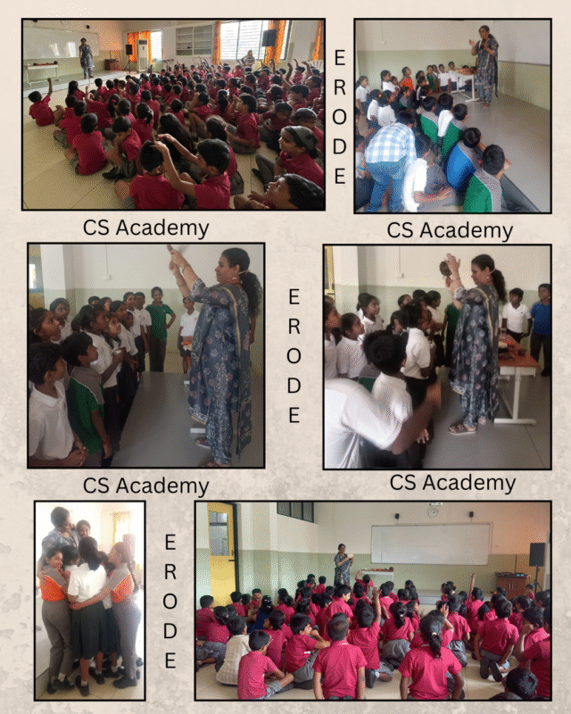 August 7th and 8th : Learning through Storytelling – A 2 days intensive story workshops with the students and teachers of CS Academy , Erode.