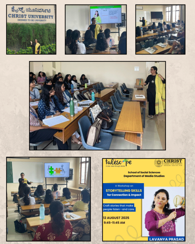 August 12 : Storytelling and Connections – For Master of Arts and Media Communication Students ( Christ University – Main Campus)